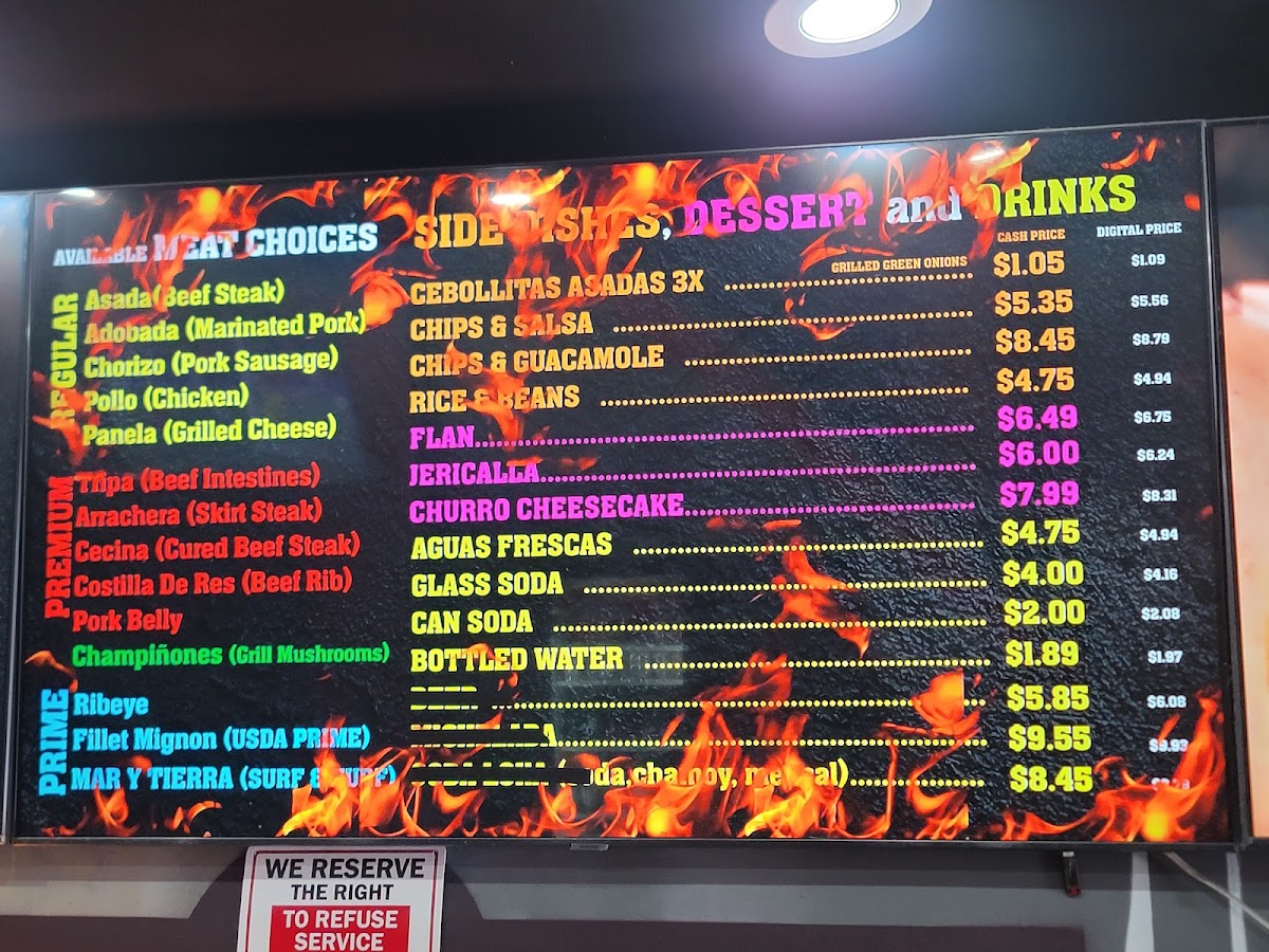 - Tacos and Specialty Items: This group features various taco options prepared with different meats and fillings such as Asada Burrito, Tacos De Tripa, and the Torta Adobada. Mulitas, known for their layered flavor and texture, are also highlighted.